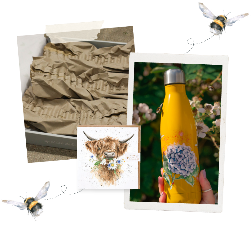 We are dedicated to producing products that are not only high quality but also good for the environment. We remove unnecessary plastic packaging wherever possible to minimize environmental impact and currently, 97% of our range is entirely plastic-free. We continually seek to introduce reusable options to our range which now includes water bottles, coffee cups, and foldable shopping bags. All our greeting cards and stationery are made from uncoated paper sourced from responsibly managed forests, and both our paper-based products and packaging are fully recyclable, with an increasing use of recycled materials. We have also replaced bubble wrap and plastic air-filled pockets with recycled paper filler which is also recyclable.