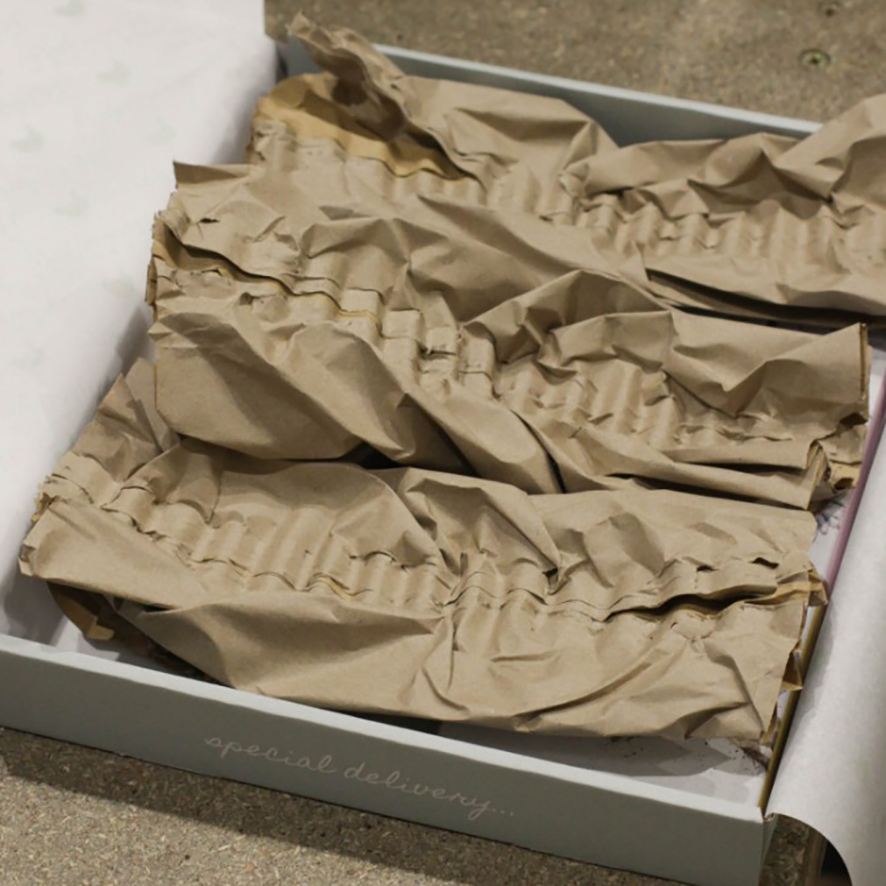 We have replaced bubble wrap and plastic air-filled pockets with recycled paper filler which is also recyclable.